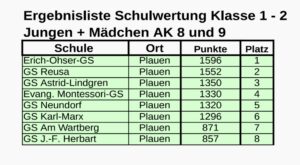 Sport, Spiel Spaß und ein bisschen Muskelkater! Am 3.März machten sich je zwei Mädchen und zwei Jungen aus der Klasse 1 und 2 auf den Weg in die Grundschule Reusa zum diesjährigen Athletikwettkampf der Plauener Grundschulen. Mit dabei: jede Menge Energie, gute Laune und vielleicht auch ein kleines bisschen Aufregung. Auf unsere Sportlerinnen und Sportler warteten sechs Disziplinen: Slalomlauf, Hockwende, Dreierhopp, Bankziehen, Pendellauf und Medizinballschocken. Klingt anstrengend? War es auch! Aber unsere Mannschaft zeigte: Turnschuhe an und los geht‘s! Vor allem unsere Erstklässler waren ziemlich aufgeregt, denn für sie war es der erste Wettkampf für unsere Schule. Doch schon nach der ersten Station war klar: Aufregung kann man wegsporteln!
