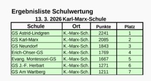 „Schach für jedermann- gemeinsam gegen Einschränkung und Ausgrenzung“. Am 21.01.2026 machten sich zwei Mannschaften unserer Schule auf den Weg zur Regionalolympiade Zwickau. Gespielt wurde in der Friedensschule in Plauen – und dort rauchten ordentlich die Köpfe! Unter der Leitung von Herrn Neugebauer knobelten, planten und kämpften unsere Spielerinnen und Spieler Zug für Zug. Am Ende erreichten unsere zwei GTA Mannschaften von 16 teilnehmenden Teams Platz 5 (Klasse 3 und 4 mit Vanessa, Yelyzaveta, Celin, Willy, Yannick) und Platz 6 (Klasse 2 mit Nino, Adrian, Ahmad, Omar). Wir sind stolz auf euch – Schach macht schlau und richtig Spaß!